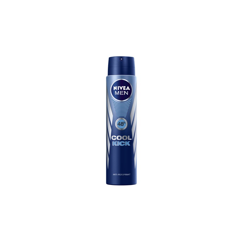 NIVEA Men Cool Kick Antyperspirant w sprayu z formułą chłodząco-pielęgnującą zapewnia skuteczną ochronę przed nadmiernym poceniem i natychmiastowe uczucie wyjątkowej świeżości, która utrzymuje się przez cały dzień. Kosmetyk jest doskonałym połączeniem niezawodnej ochrony antyperspirantu i łagodnej pielęgnacji NIVEA. Ma pobudzający zapach, który będzie Ci towarzyszyć przez wiele godzin po aplikacji. Produkt dostępny jest również w kulce. Tolerancja dla skóry potwierdzona dermatologicznie.