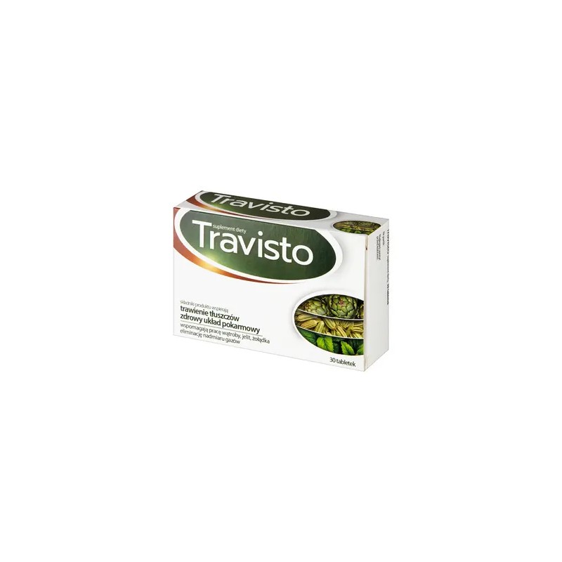 Travisto - suplement diety zawierający składniki wspomagające trawienie tłuszczów oraz wpływające na układ pokarmowy. Produkt przeznaczony dla osób dorosłych.