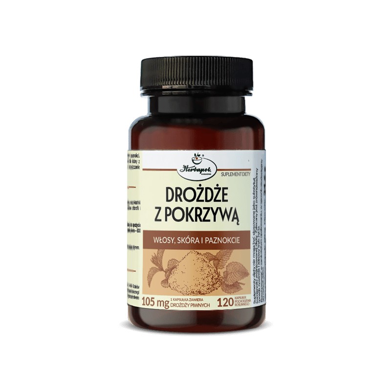 Drożdże piwne, ziele pokrzywy oraz składniki kapsułki.