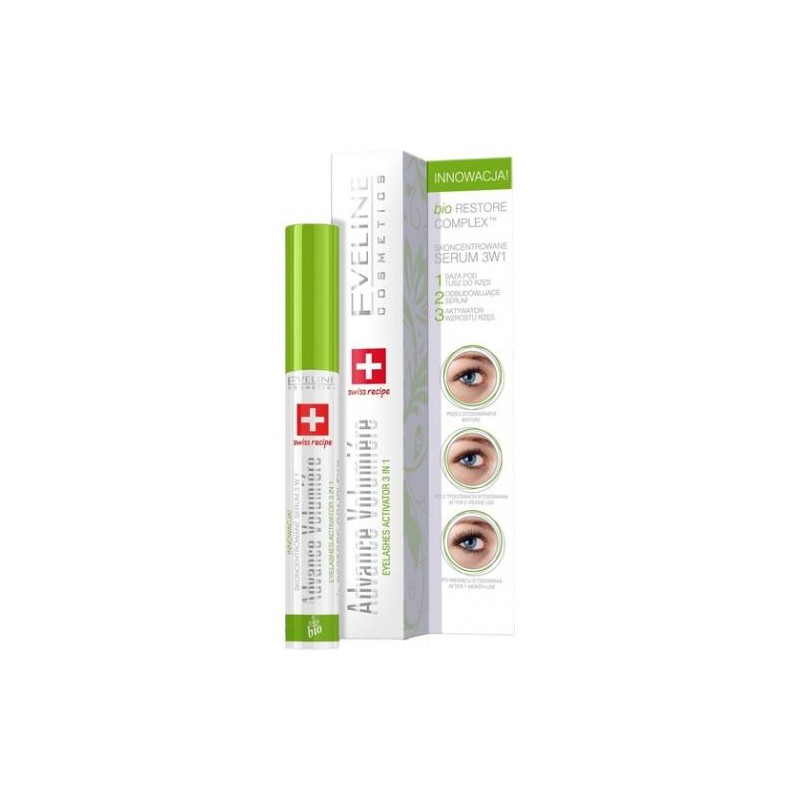 Eveline Advance Volumiere skoncentrowane serum do rzęs 3w1 to zaawansowana technologia dla piękna rzęs. Nowoczesne serum do rzęs łączy w sobie 3 właściwości: serum odbudowującego, aktywatora wzrostu włosa i bazy pod tusz.