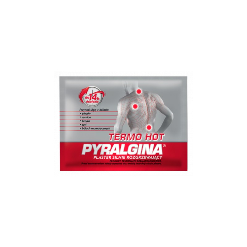 Pyralgina Thermo Hot to wyrób medyczny w postaci plastra silnie rozgrzewającego, który przynosi ulgę w dolegliwościach bólowych pleców, ramion, szyi, krzyża, a także w bólach reumatycznych. Plaster szybko przywraca aktywność i pozwala zapomnieć o bólu. Produkt został przetestowany dermatologicznie.