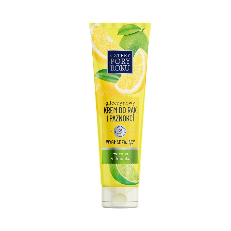 Glicerynowy krem z cytryną, limonką i olejkiem rycynowym nawilża i wygładza skórę, wyrównuje jej koloryt oraz wzmacnia płytkę paznokcia.