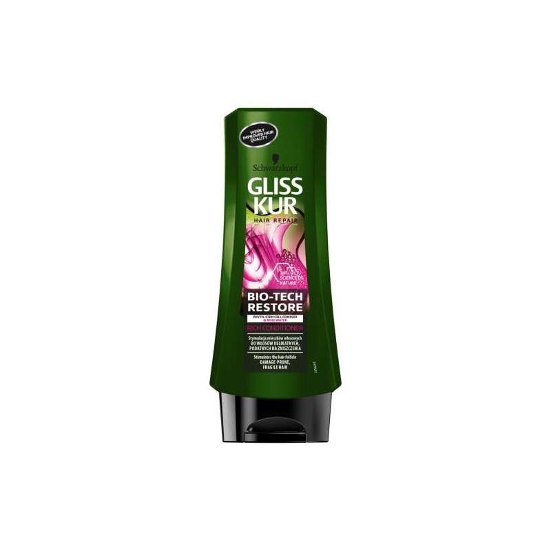 Bogata odżywka Bio-Tech Restore z KOMPLEKSEM z FITOKOMÓREK MACIERZYSTYCH i WODĄ RÓŻANĄ regeneruje i chroni delikatne, podatne na zniszczenia włosy. Wzmacnia włosy aż do 90%* i pozostawia je miękkie i lśniące, widocznie poprawiając ich jakość. Ułatwia rozczesywanie. Bez silikonów i sztucznych barwników.