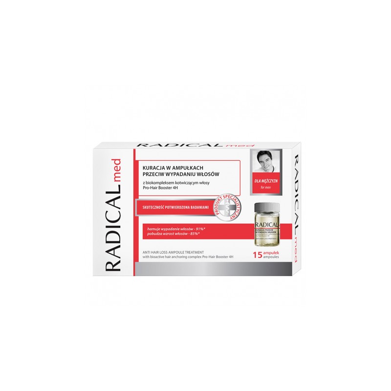 Kuracja w ampułkach przeciw wypadaniu włosów dla mężczyzn to specjalistyczny preparat nowej generacji do włosów osłabionych i wypadających. Kuracja w ampułkach doskonale pielęgnuje włosy, przywracając im witalność i zdrowy wygląd. Specjalna receptura oparta na naturalnych składnikach regeneruje i wzmacnia cebulki, a ekstrakt ze skrzypu polnego poprawia dotlenienie komórek skóry i zapobiega wypadaniu włosów. Dzięki zastosowaniu zaawansowanego biokompleksu Pro-Hair Booster 4H, który zawiera peptyd witaminowy, apigeninę oraz kwas oleanolowy, włosy stają się mocniejsze. Zawarta w preparacie arginina, żeń-szeń, witamina PP oraz prowitamina B5 skutecznie regeneruje i odżywia cebulki włosów, stymulując ich wzrost.