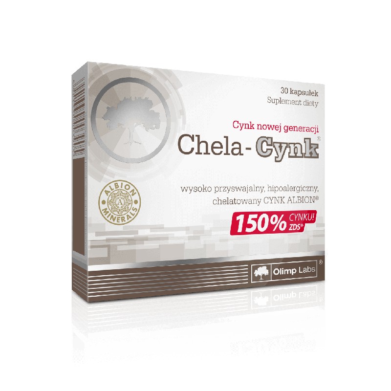 Chela-Cynk® to suplement diety zawierający najlepiej przyswajalną formę cynku w postaci najwyższej jakości diglicynianu cynku Albion® (chelat aminokwasowy).