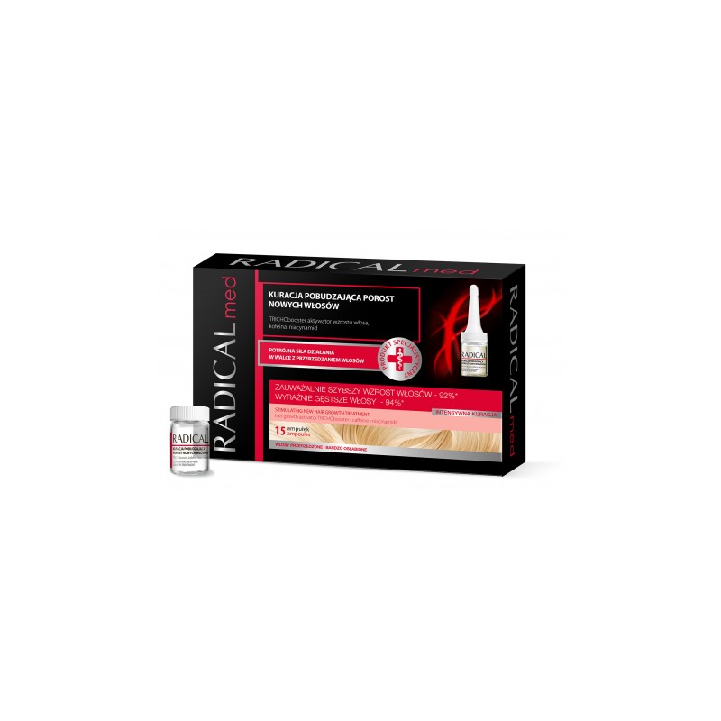 Radical Med Kuracja pobudzająca porost nowych włosów to potrójna siła w walce z przerzedzaniem się włosów.
