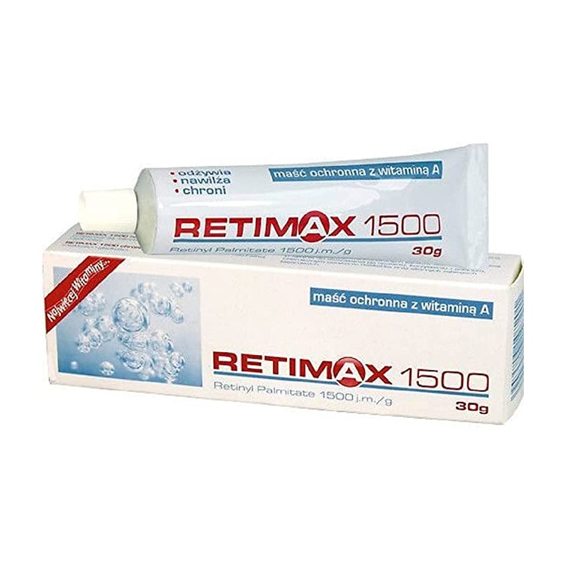 RETIMAX 1500 odżywia skórę dzięki zawartości witaminy A, będącej niezbędnym regulatorem odnowy komórek. RETIMAX 1500 nawilża przenikając głęboko w skórę, pomaga przywrócić jej naturalny stan nawilżenia, elastyczności i jędrności.