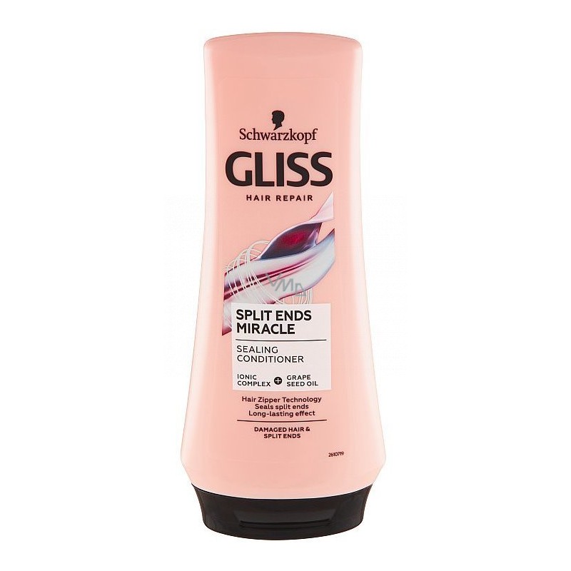 Schwarzkopf Gliss Split Ends Hair Miracle Conditioner offers deep nutrition and specializes in restoring damaged hair. In fact, it relies on a groundbreaking zipper-like effect, merging split ends in need of hydration for an overall polished/healthier appearance. The formula's Ionic Complex teams up with Grape Seed Oil to produce effortless as well as quick results. Besides targeting damaged hair fibers, this intensive care solution also shields damaged hair strands, maximizing their resilience against external threats.