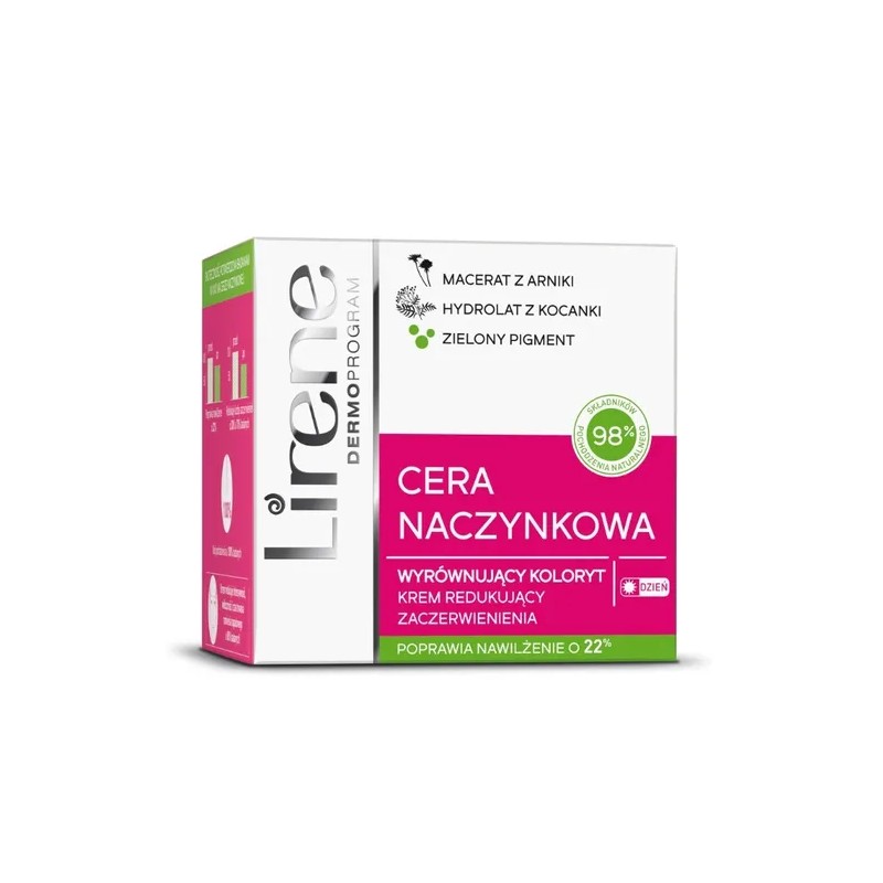 Krem o lekkiej formule opracowany przez Ekspertki Lirene z myślą o wymagającej, delikatnej cerze naczynkowej.