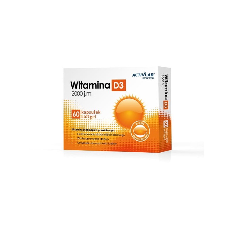 Witamina D3 2000 UI to produkt zawierający 2000 j.m witaminy D3 rozpuszczonej w oleju słonecznikowym.