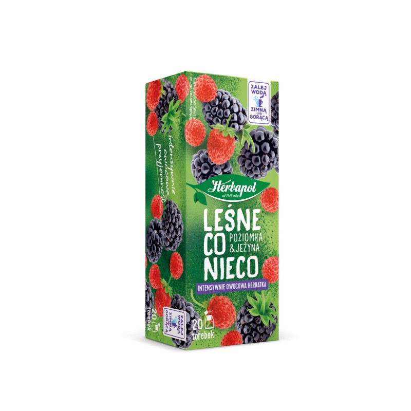 Zapraszamy do podróży przez intensywnie owocowy świat herbatki Herbapol Leśne Co Nieco, gdzie poziomka tańczy z dziką jeżyną, tworząc niezapomniany raj smakowy dla Twoich kubków smakowych. Nasza innowacyjna receptura została stworzona z myślą o Twojej wygodzie – możesz cieszyć się nią zarówno jako gorący napój, rozgrzewający w chłodne wieczory oraz orzeźwiający w upalne dni.