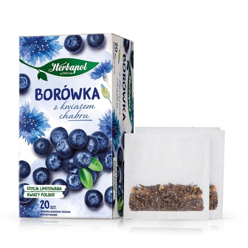Borówka z kwiatem chabru to niezwykle aromatyczna herbatka, która powstała z fuzji owoców z kwiatami. Pyszne owoce, w połączeniu z kwiatami chabru, to nie tylko ciekawe połączenia smakowe, ale również najwyższa jakość składników zamknięta w przezroczystej saszetce. Widoczna jakość dużych owoców i płatków kwiatów, złożona ze 100% naturalnych składników. Sięgając po herbatki Herbapol wybierasz to, co najlepsze z natury. Wyselekcjonowane i starannie zebrane owoce i kwiaty poddawane są dokładnej kontroli, a następnie starannie pakowane tak, aby chronić całe dobrodziejstwo natury.