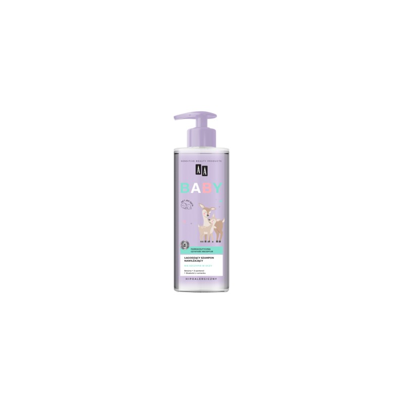 Łagodzący szampon nawilżający to wyjątkowy kosmetyk do pielęgnacji delikatnej skóry głowy i włosów dziecka już od pierwszych dni życia. Hipoalergiczna formuła delikatnie oczyszcza włosy i skórę głowy, chroniąc je przed przesuszaniem. Nadaje włosom miękkość i zdrowy blask, ułatwiając rozczesywanie. Łatwo się rozprowadza i spłukuje. Nie szczypie w oczy.