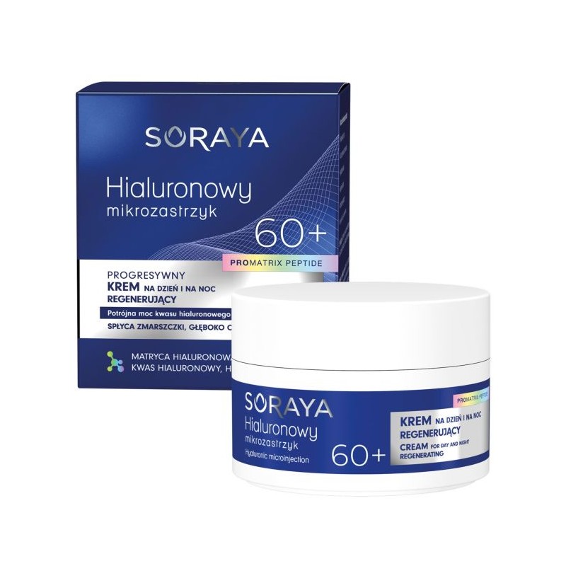 Progresywny krem regenerujący 60+ na dzień i na noc, kwas hialuronowy i peptyd sygnałowy