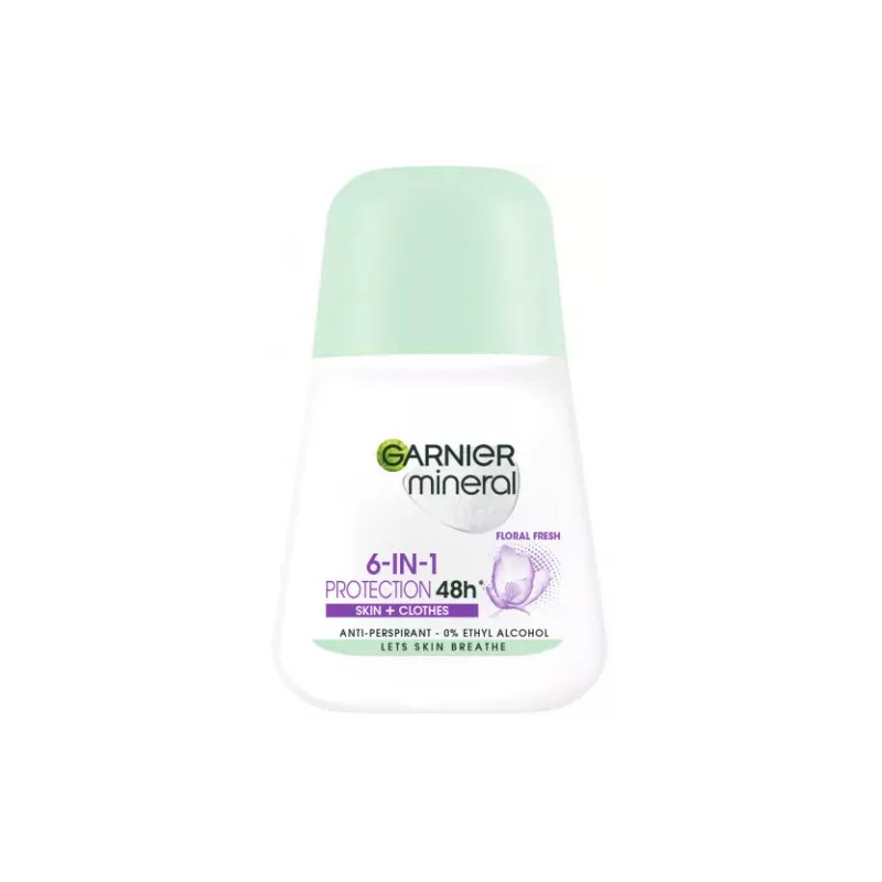 Antyperspirant Garnier 48h z Mineralite - minerałem o właściwościach ultraabsorbcyjnych, 48h nieprzerwanej ochrony przed wilgocią; skóra, która oddycha. Bez alkoholu. Bez parabenów. Testowany dermatologicznie. Optymalna tolerancja dla skóry.